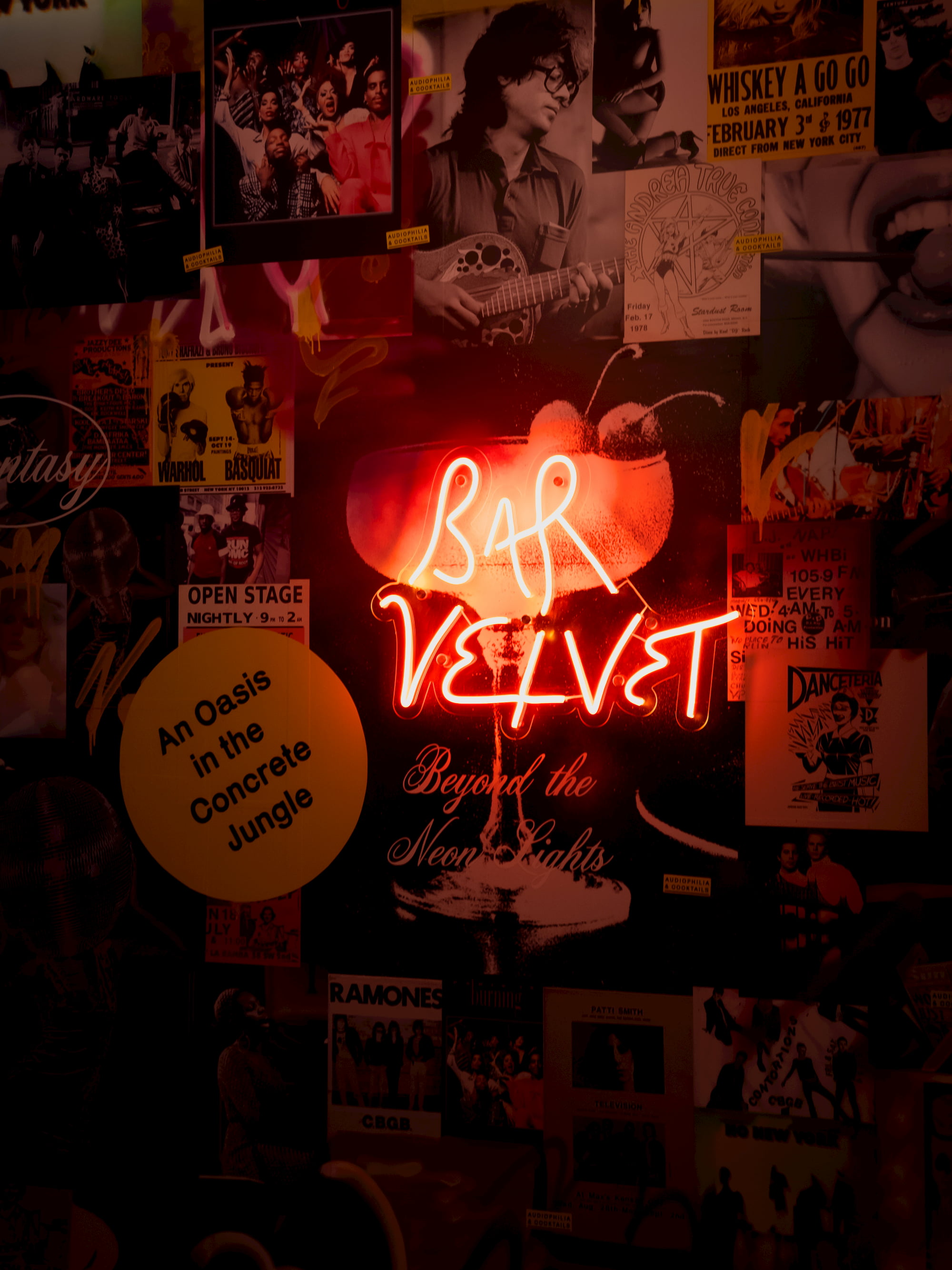 Bar Velvet is a signal pulsing through time—an homage to an era of unfiltered creativity, coded language, and layered storytelling. A hidden world where the past vibrates into the now, an oasis in the concrete jungle.